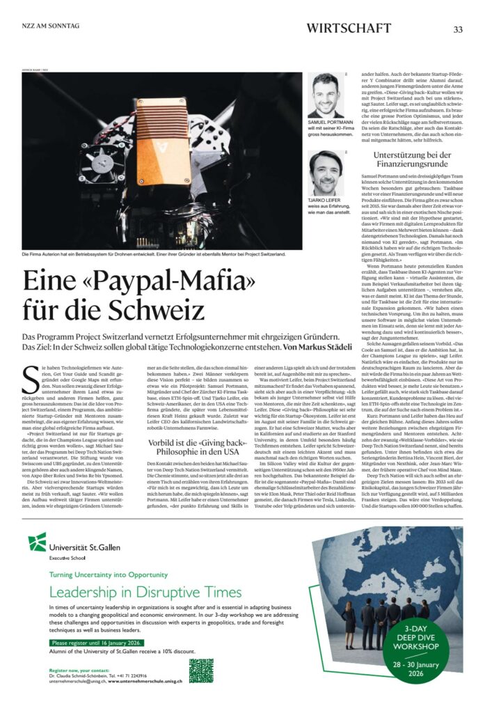 Project Switzerland: 20 Schweizer Tech-Pioniere geben ihr Erfolgsgeheimnis an heimische Scale-ups weiter
